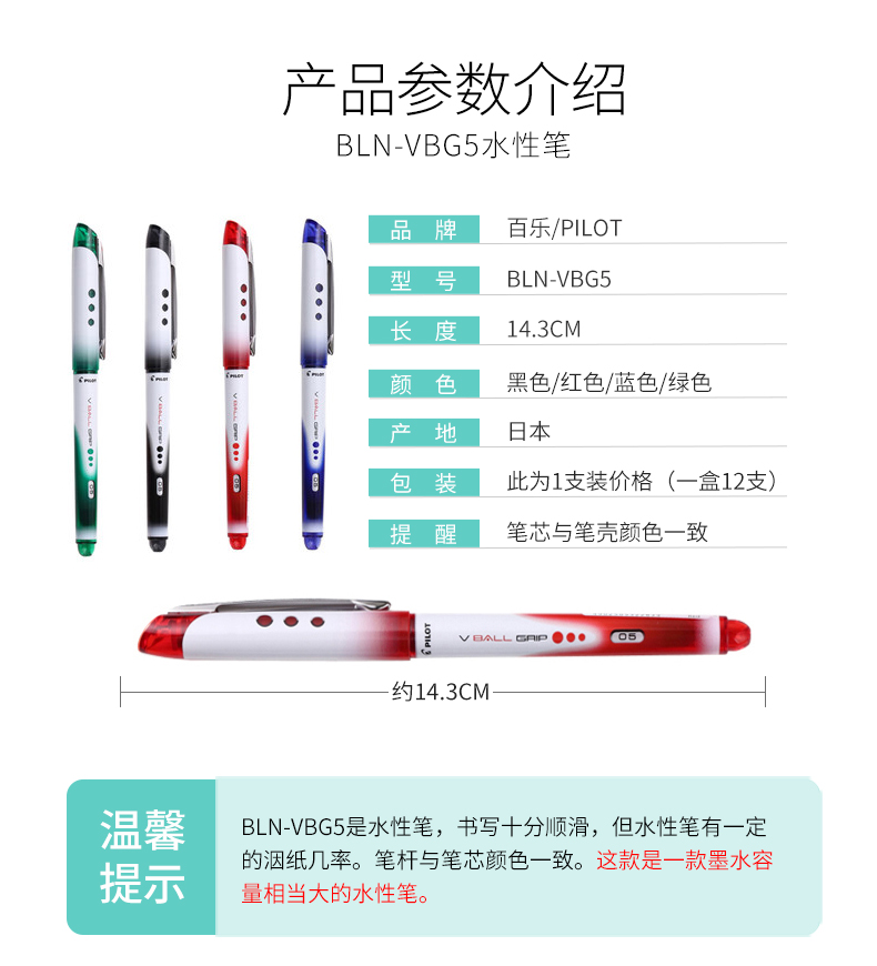 百乐 宝珠笔 BLN-VBG5 0.5mm水笔 签字笔 盒(12支)