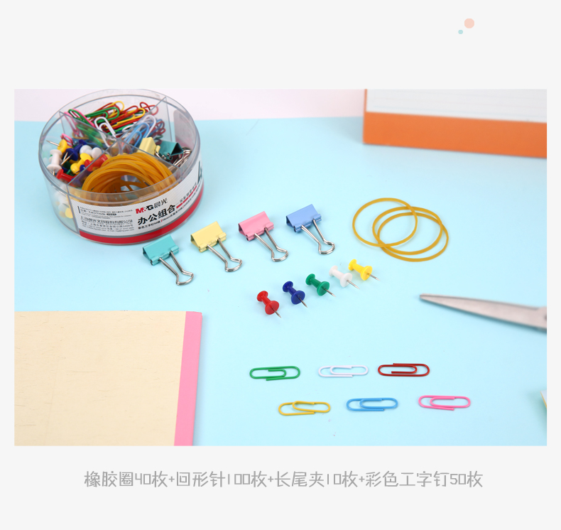 晨光 办公组合套装 ASC99360 工字钉 晨光办公组合套装 长尾夹 票夹 回形针 橡皮筋 彩色套装 创意办公组合