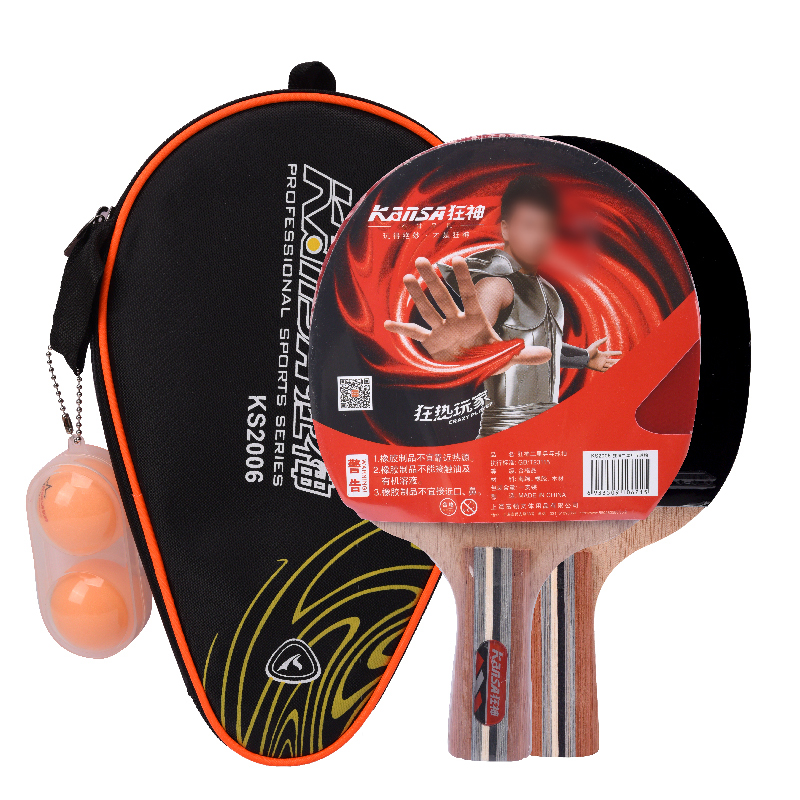 狂神 2006 二星乒乓球拍 球拍 短拍 双面反胶 单支装(带球套)