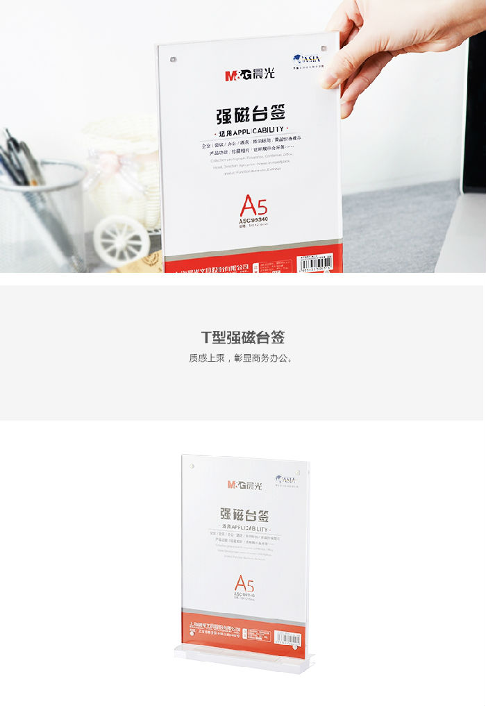 晨光 99340 台卡桌牌抽拉式桌签台签会议牌展示牌台牌 T型 A5 竖式