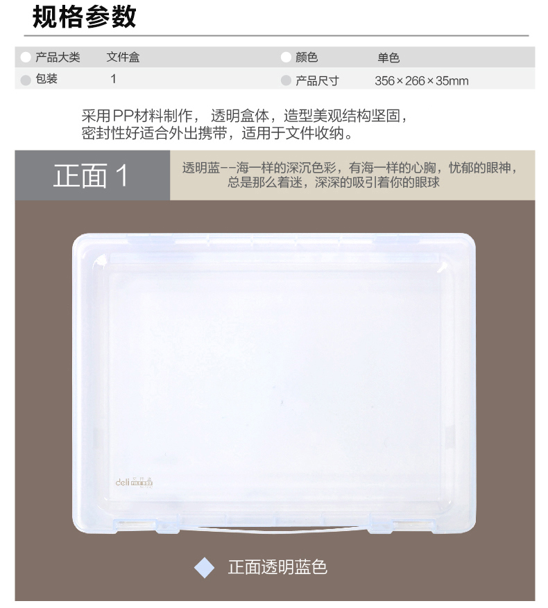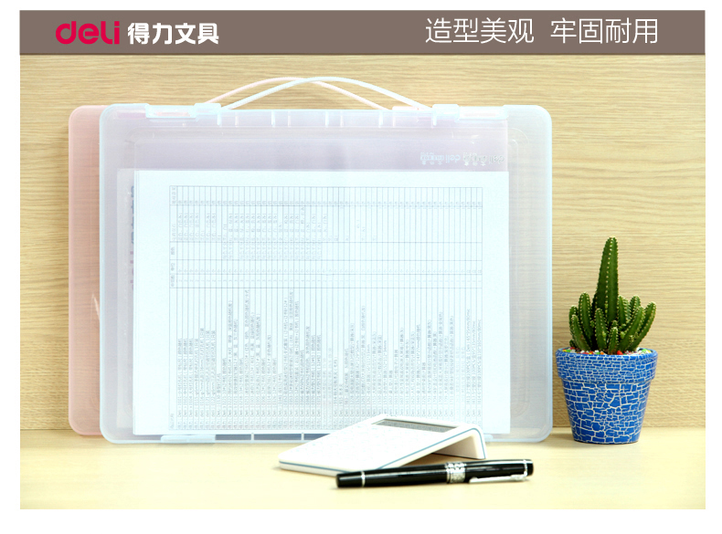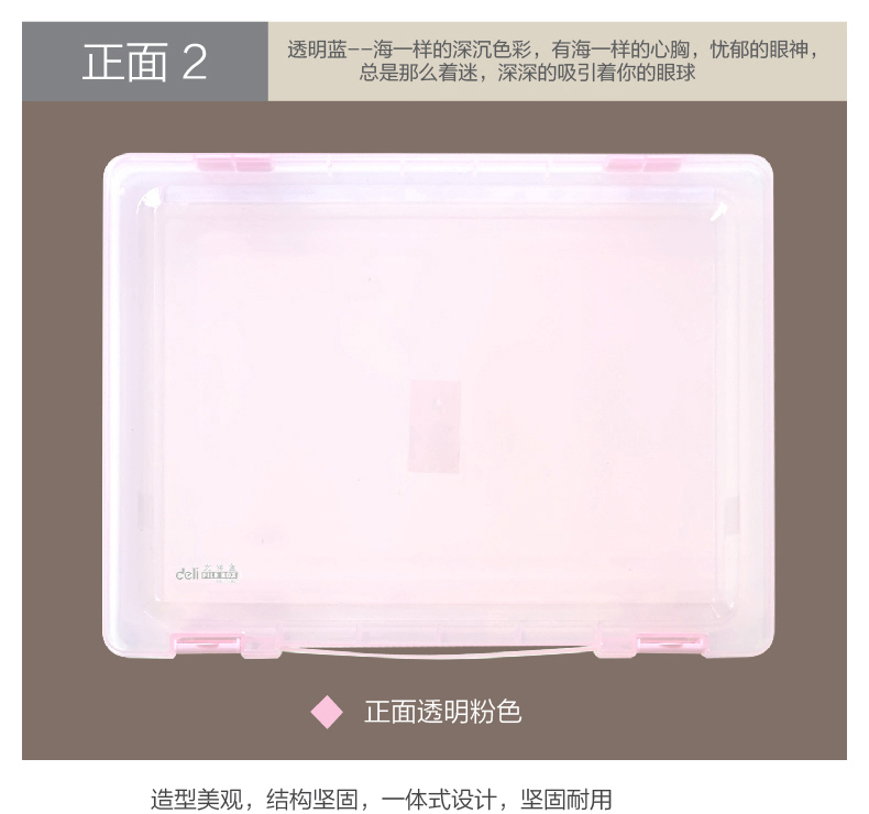 得力 文件盒 5702A4手拎塑料透明收纳盒 大号防水密封档盒